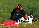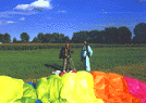 Der erste Schritt ist bekanntlich der schwerste. Dabei kann er mit einem Sprung als Tandempassagier sehr einfach sein. Alle großen Ausbildungszentren und die Mehrzahl der über 80 Vereine des Deutschen Fallschirmsportverbandes bieten diese Möglichkeit an, um in das Fallschirmspringen hineinzuschnuppern. Interessenten benötigen dafür lediglich etwas Zeit. Eine spezielle Ausrüstung oder ein ärztliches Attest sind nicht erforderlich. Sportlich bequeme Bekleidung und ein paar Sportschuhe reichen aus. Alles, was sonst noch erforderlich für den Sprung ist, wird im allgemeinen durch den Ver- anstalter bereitgehalten. Nach einer kurzen Einweisung in die wesentlichen Abläufe des Sprunges, kann das faszinierende Erlebnis gemeinsam mit einem ausgebildeten und speziell für das Tandemspringen geprüften Sprunglehrer (Tandemmaster) beginnen. Passagier und Tandemmaster verwenden für den Sprung ein für zwei Personen kon- struiertes Fallschirmsystem und sind während des gesamten Sprunges durch ein Spezial- gurtzeug untrennbar miteinander verbunden. Nach dem Absprung aus 3000 bis 4000 Metern Höhe erfolgen etwa 50 Sekunden Flug im freien Fall, bis in 1 500 Metern über der Erde der Fallschirm geöffnet wird |